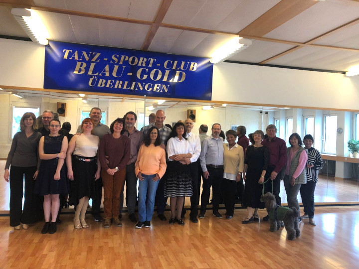Am 01. Mai 1988 wurde der TSC Blau-Gold Überlingen gegründet - Anlass genug, um die Einweihung des neugestalteten Tanzsaals (und auch des Vorraums) im Clubheim am 30.04.2023 mit einem "Tanz in den Mai" zu feiern. Der Übungsabend, zu dem alle Vereinsgruppen geladen waren, fand regen Zuspruch. Bei einem Begüßungssekt wurden erst einmal Neuigkeiten mit "alten Bekannten" ausgetauscht, die man lange nicht gesehen hatte. Rasch wurden die im Vorraum verteilten Tische und Stühle zu Gruppen zusammengeschoben, an denen man umso besser in großer Runde miteinander plauschen konnte.