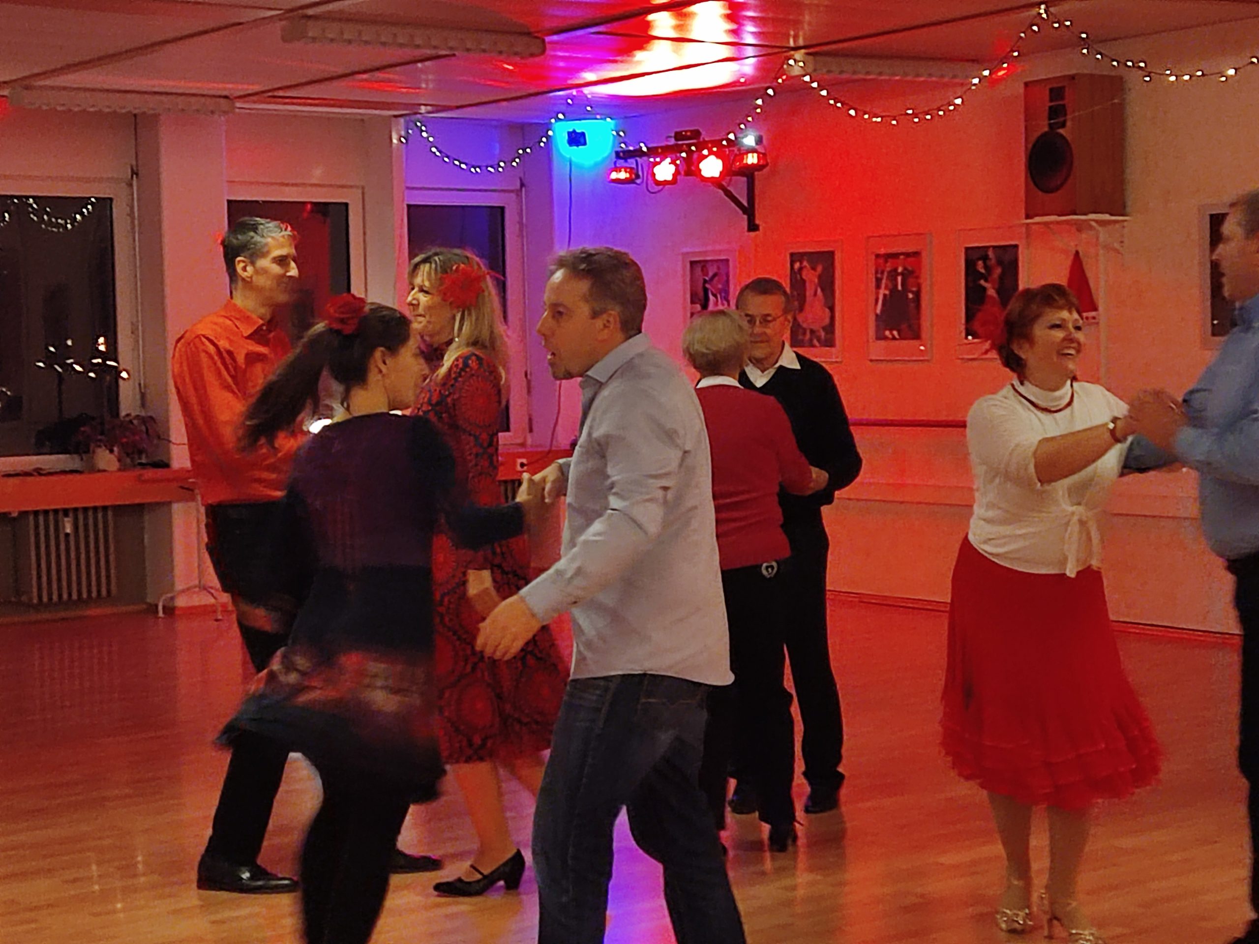 Ganz besonders positiv war bei dieser Weihnachtsfeier die Bereitschaft vieler Mitglieder, sich auch mit einem tänzerischen Beitrag einzubringen: Wir durften eine temperamentvolle Rueda der Salsa-Gruppe, einen gefühlvollen Langsamen Walzer vom Ehepaar Martin als unseren Neueinsteigern in den Turnier-Tanzsport, zwei ganz unterschiedliche Beiträge der New-Vogue-Gruppe mit Variationen zu Tango- und Quickstep-Musik sowie einen Jive-Quickstep-Mix von Peter und Irina aus der Freitags-Lateingruppe - in weihnachtlicher Kostümierung und mit lustigen Choreo-Ideen auftretend - genießen. Last but not least folgten nahezu alle Tänzer dem Aufruf von Margit Pautsch zu einem kurzen Ausflug in die Line-Dance-Welt - auch hier mit viel Spaß und Gelächter verbunden.